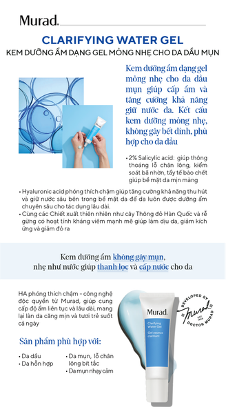 - Kem dưỡng ẩm không gây mụn, nhẹ như nước giúp thanh lọc và cấp nước cho da để có làn da sáng hơn.